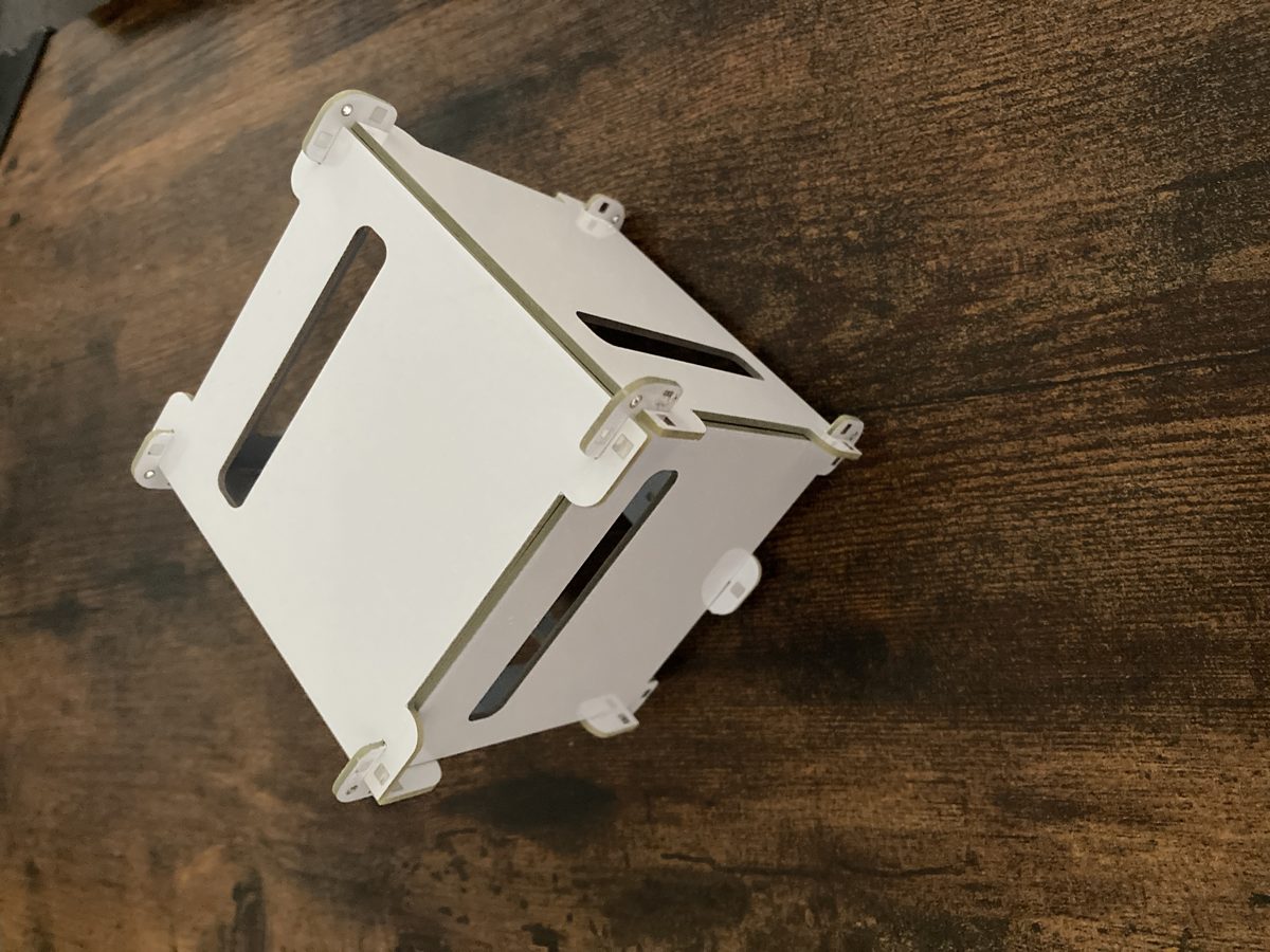 A smaller, desk-friendly cube using five 8x8 grids. Unlike the large cube, this one uses a continuous sequence so patterns flow across faces.