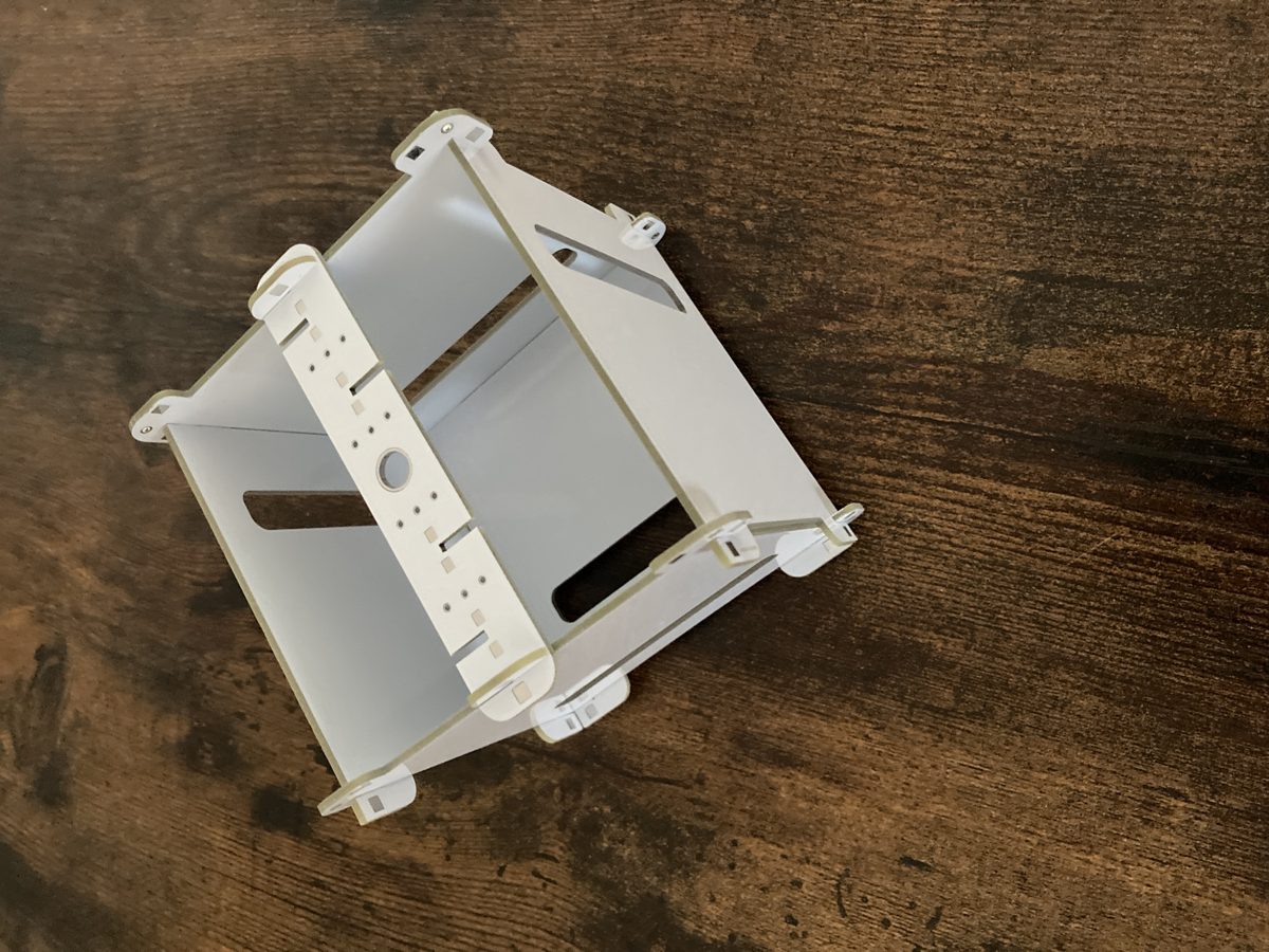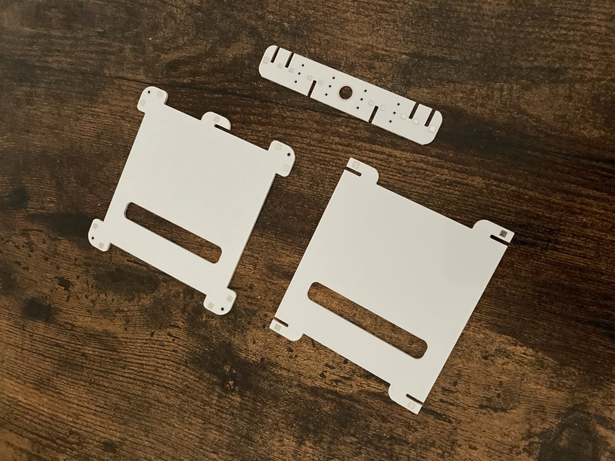 - Modular, self-assembling frame with interlocking pieces.