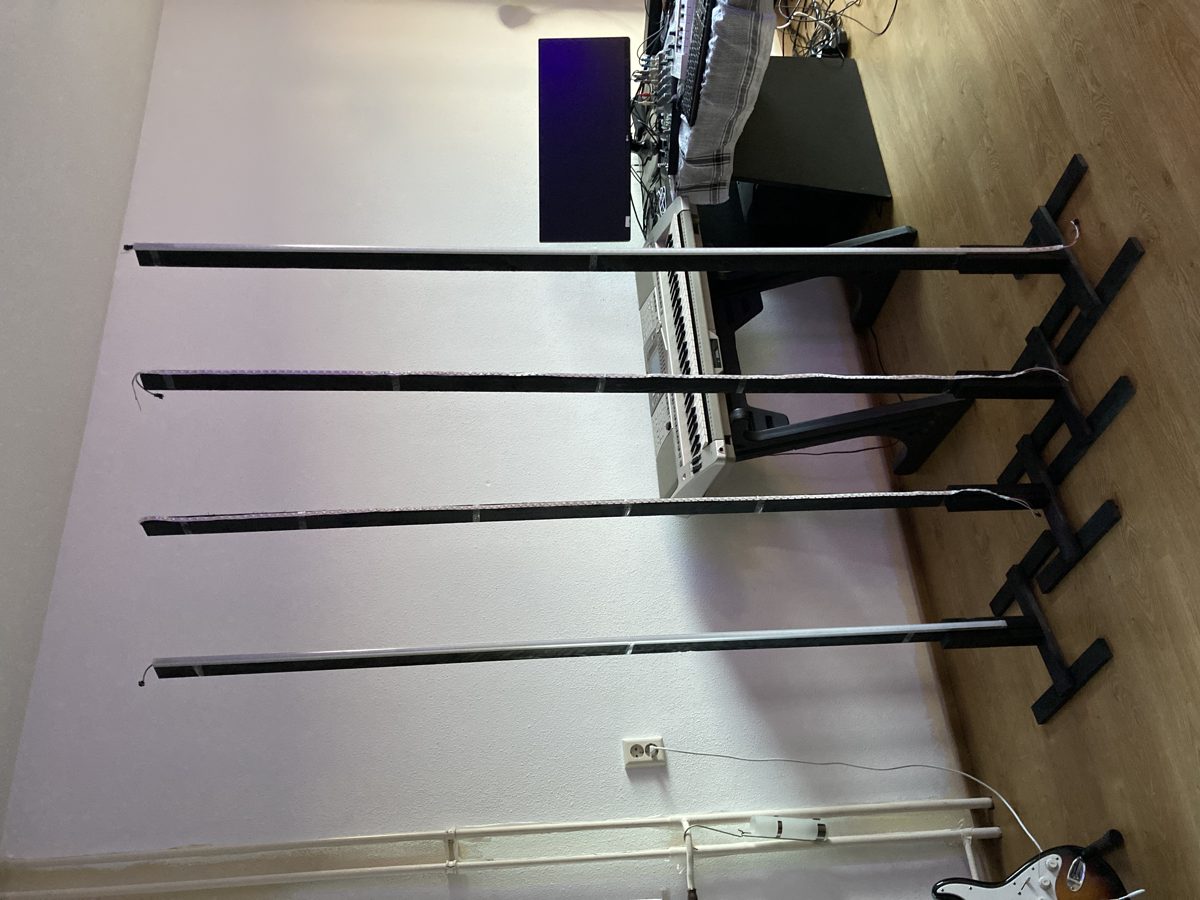 Movable pillar stands with 2m LED strips (60 LED/m). Designed to face a wall or surface to transform a space with ambient light.